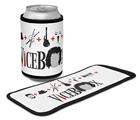 Neoprene wrap can hugger rubber beverage insulator. Wraps completely around can or bottle and fastens with sewn in Velcro.