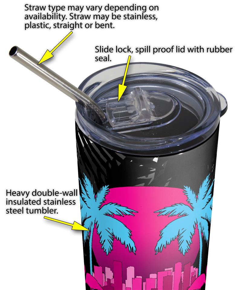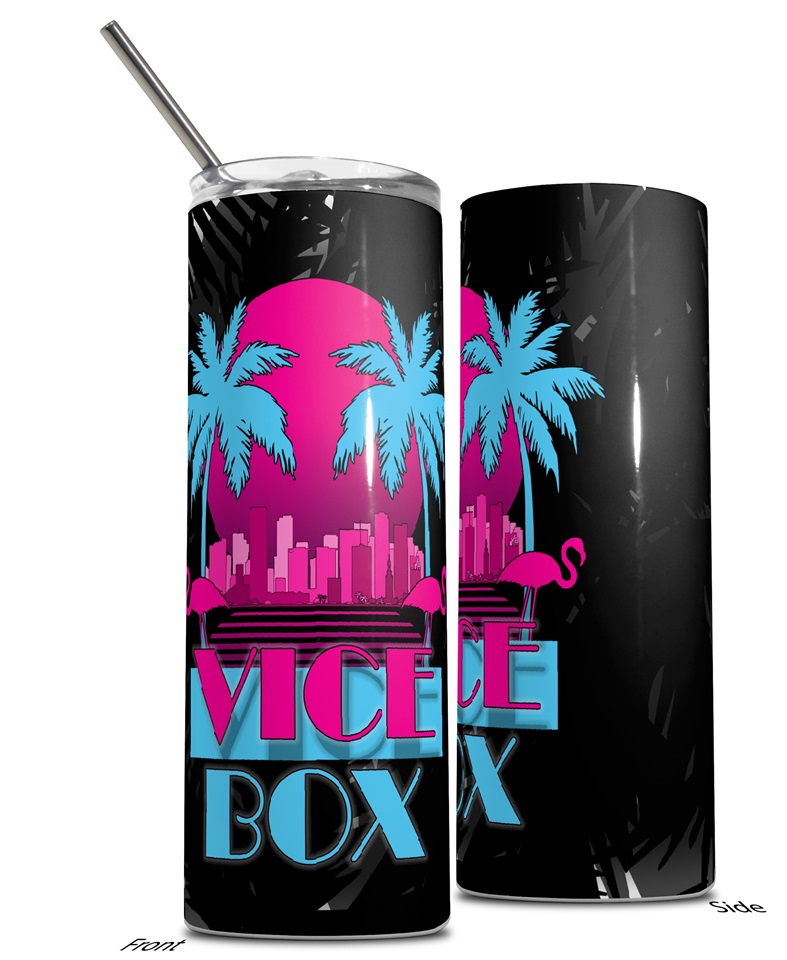 20oz Tumbler Stainless Steel, Double Wall Insulated, Straw, Spill Proof Lid Miami ViceBox Black
